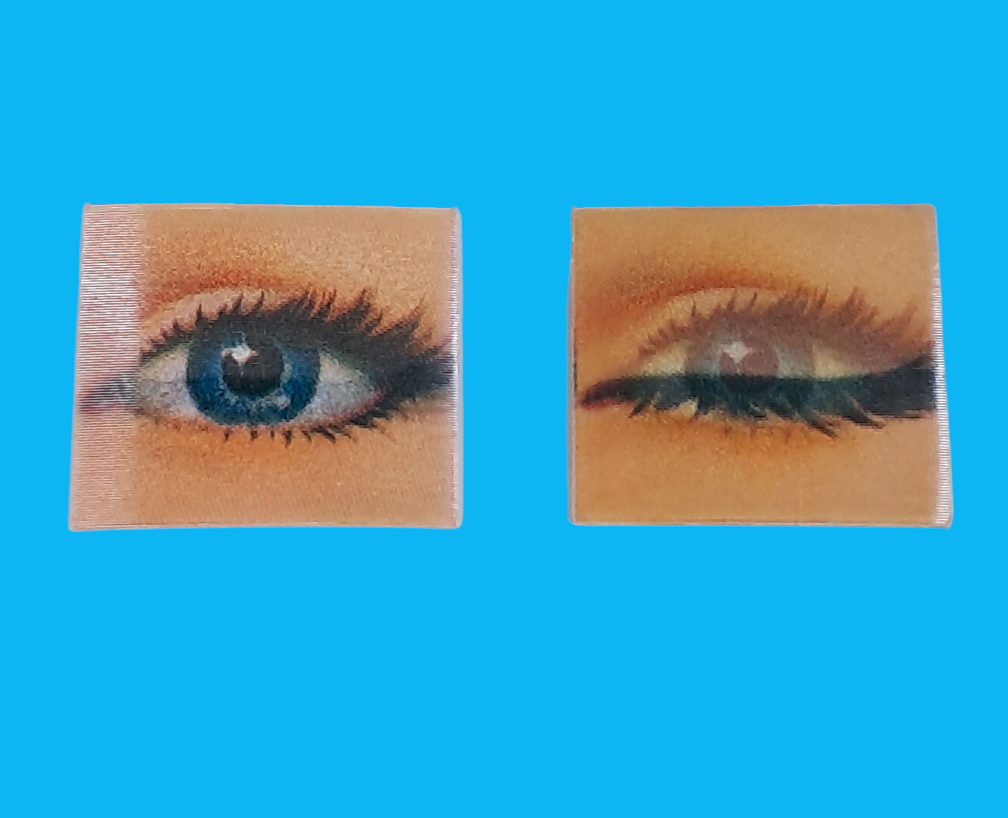 Very cool eye flicker cards made by vari vue. These are circa 1960’s and measure about 1 1/4”x1 1/8”. Eyes open and close as cards are moved back and forth. So fun for card making, junk journals, jewelry making, creepy projects or whatever your little heart desires.